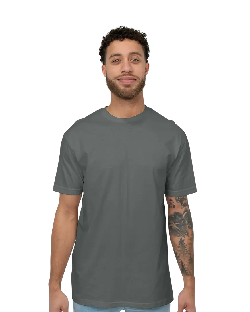 The Bella + Canvas 3001 drapes closer to your body. The side seams and finer fabric give it a bit more movement and shape. It follows your frame without clinging, which is why it feels more like retail apparel than a blank tee. It’s the one you’d wear out, not just keep as a backup shirt.