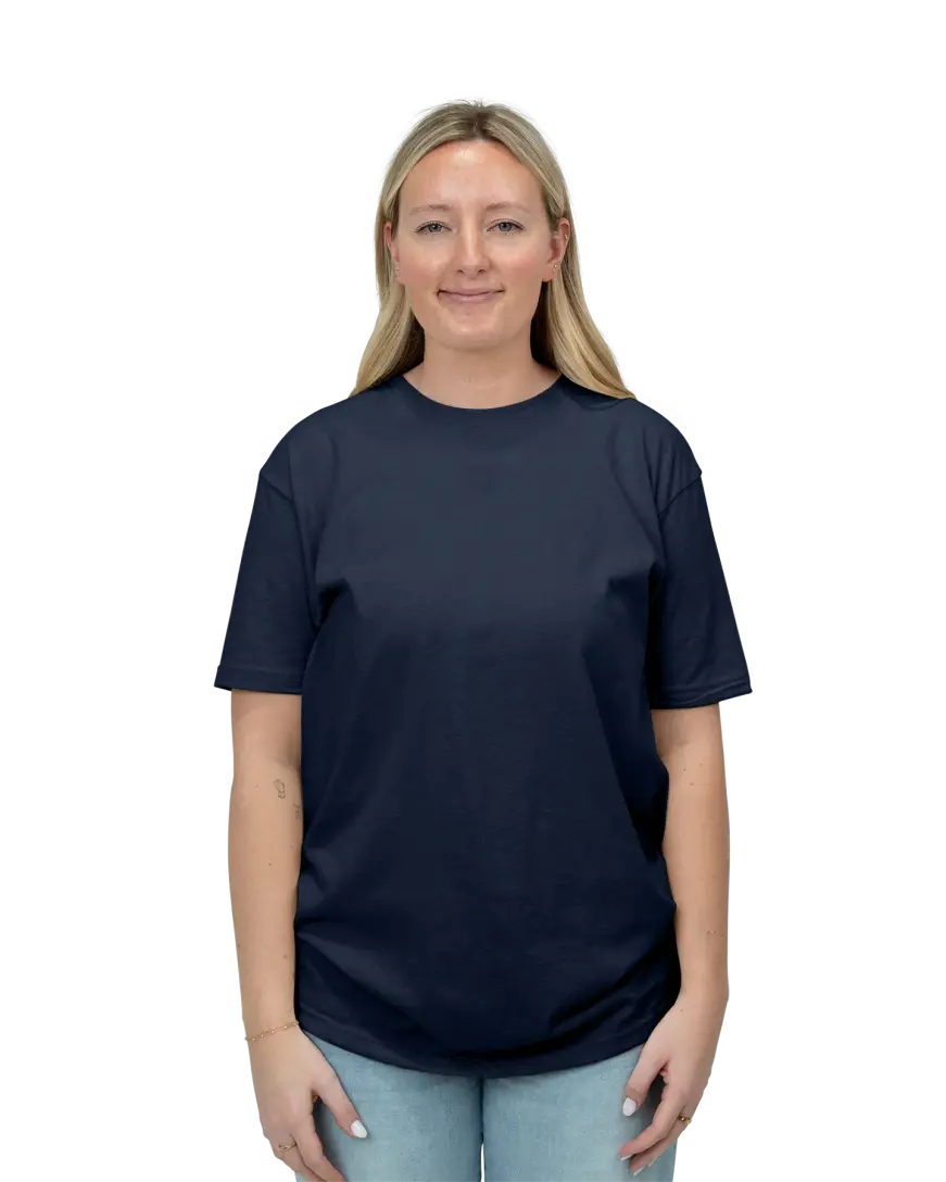 This is a 100% combed cotton tee with enough structure to support printing without feeling stiff. It’s smooth, consistent, and forgiving, which is why it’s often used for large runs, events, and reorders where consistency matters. The fit is modern without being tight, which makes it easier to size for groups with mixed body types. It doesn’t try to be fashion-forward, but it doesn’t feel outdated either.