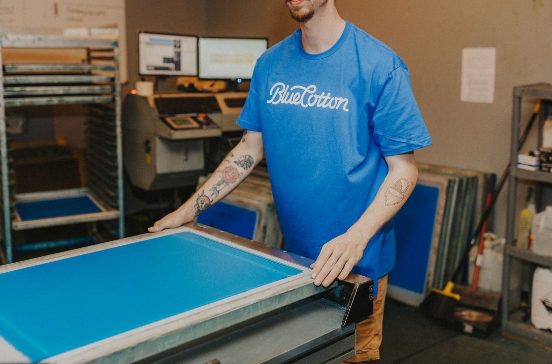 It’s also important to note that each ink color in the design requires a separate screen in the press, which means it’s also a limiting factor (depending on how large your screen printing presses are). Many presses will only hold six to eight colors, while a few can handle as many as 16 — including one of the presses at BlueCotton.
